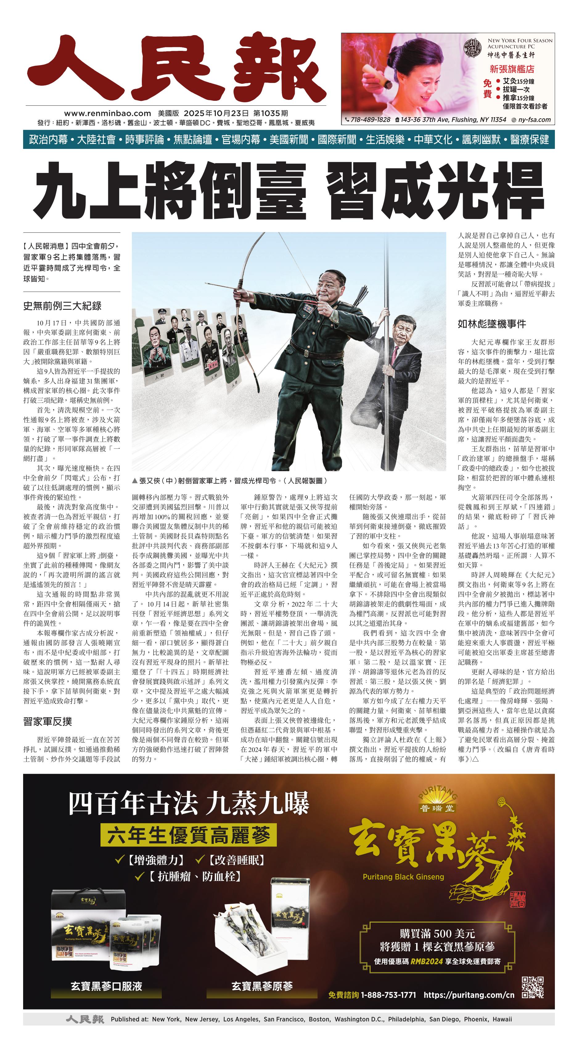 (2025年10月23日)A1版: 头版