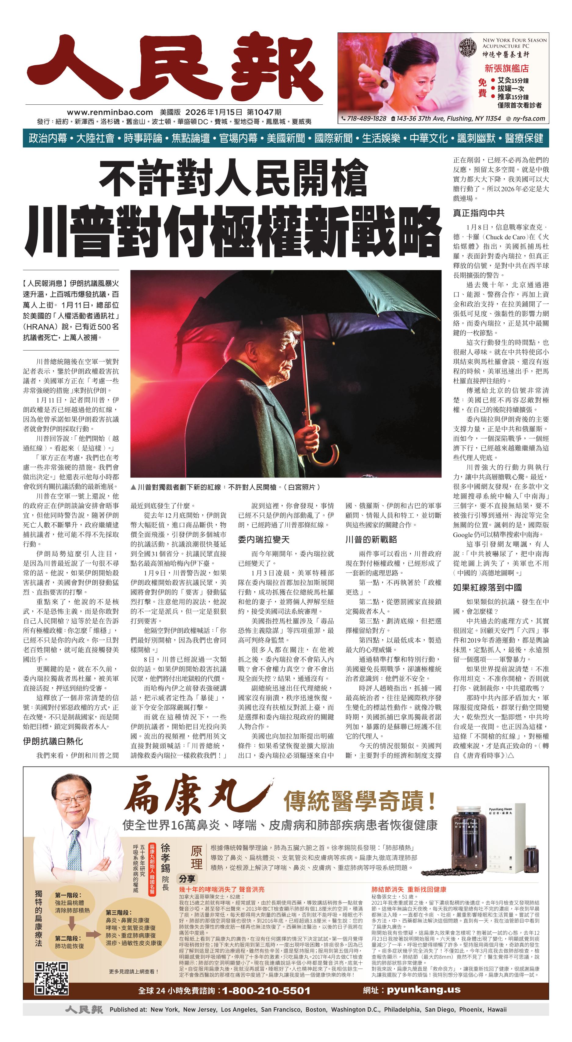 (2026年1月15日)A1版: 头版