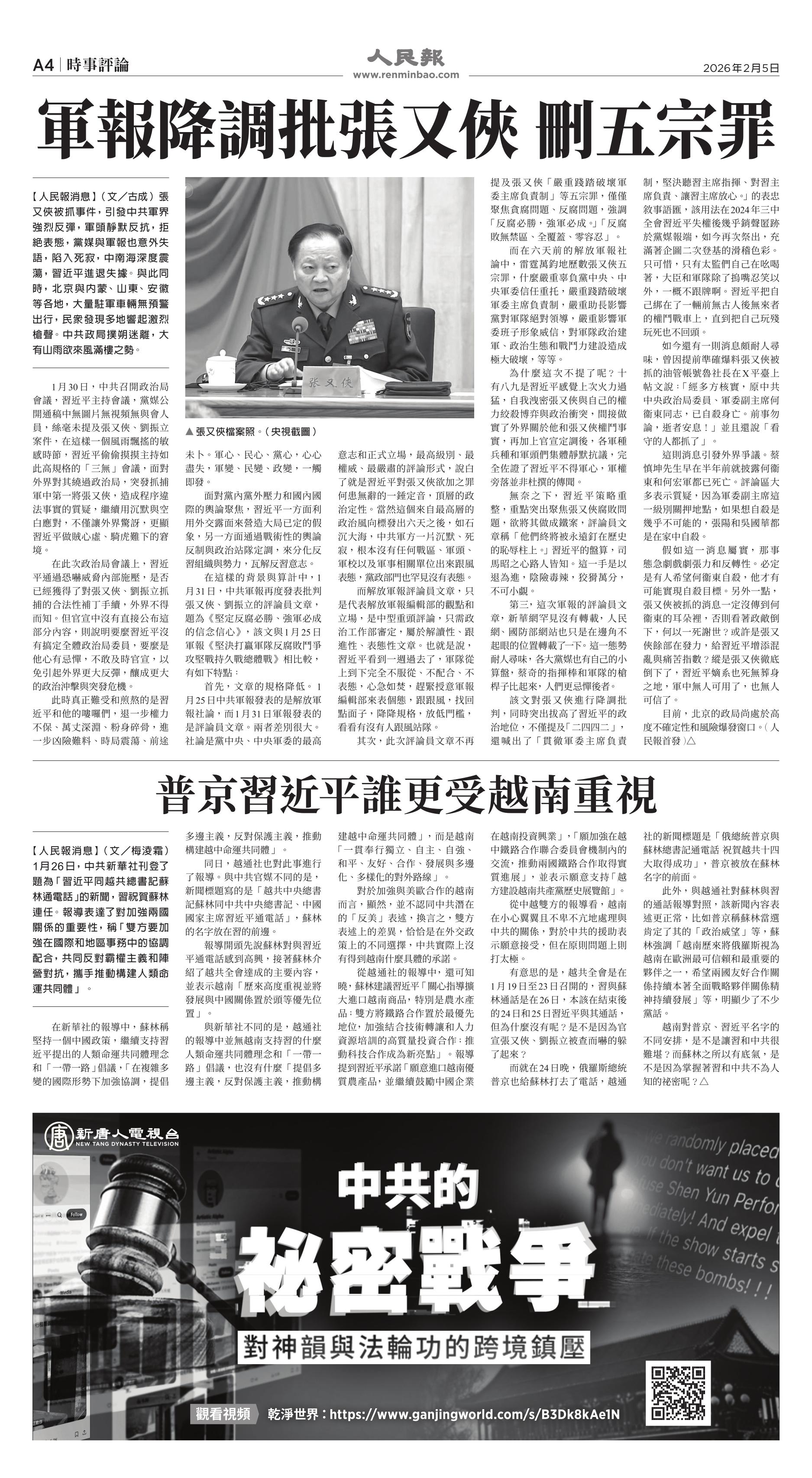 (2026年2月5日)A4版: 時事評論