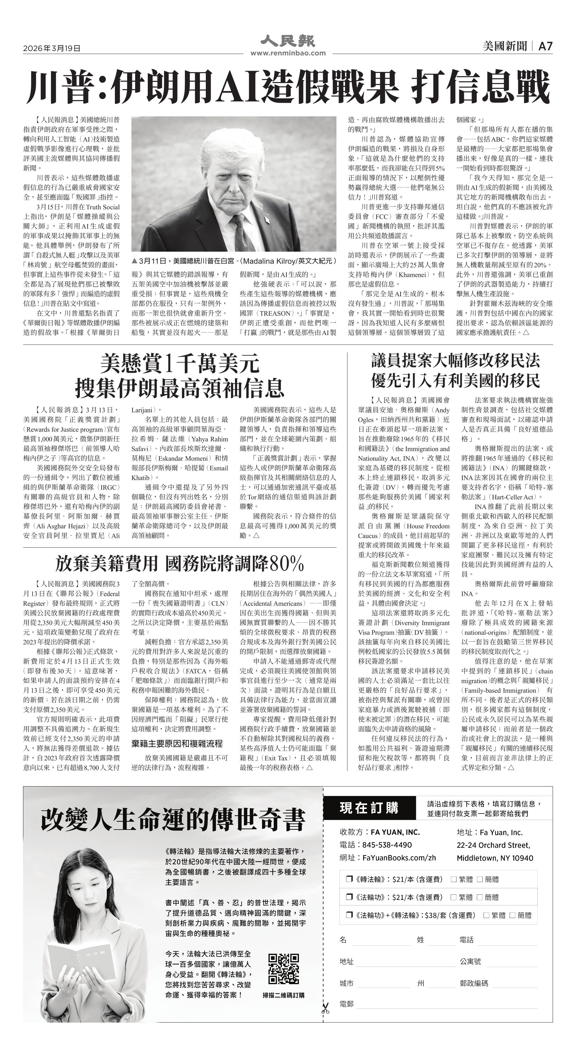(2026年3月19日)A7版: 美國新聞