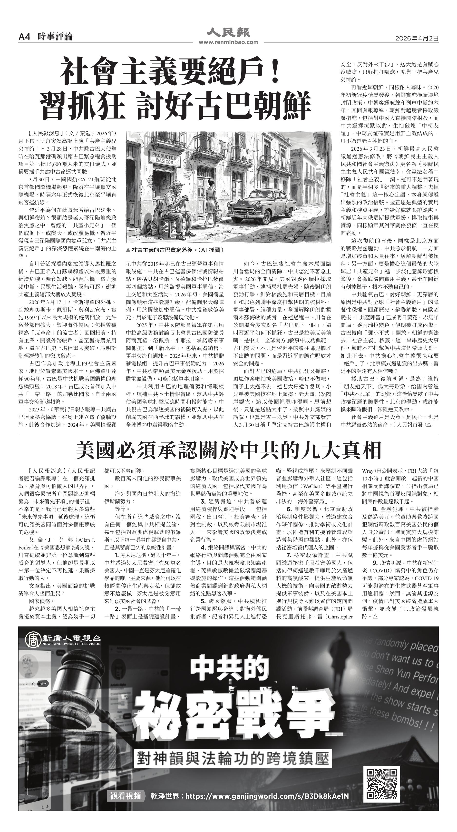 |<<  <<前一頁 < 返回 第1058期  (2026年4月2日)A4版: 時事評論 下一頁>>  >>|