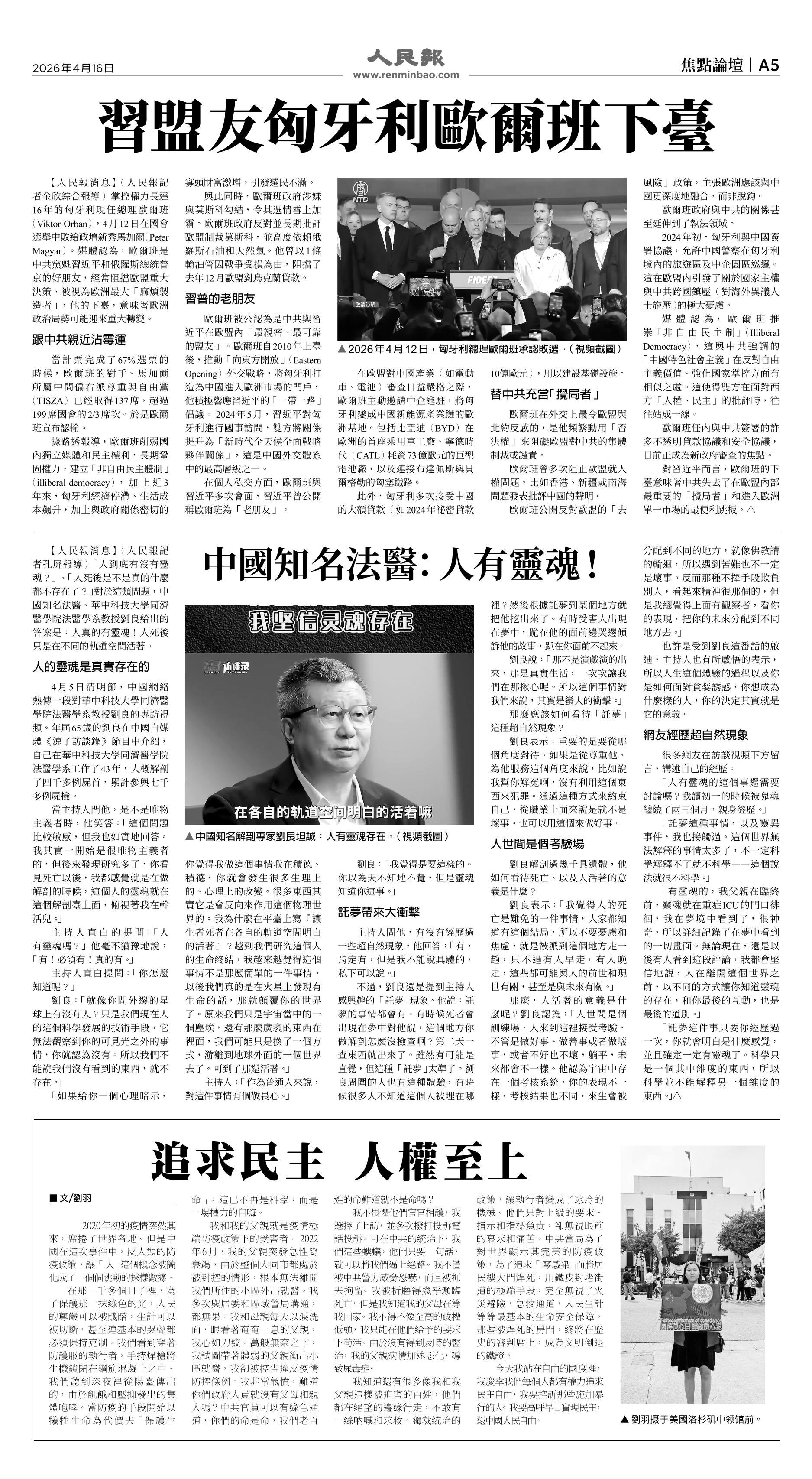 |<<  <<前一页 < 返回 第1060期  (2026年4月16日)A5版: 焦点论坛 下一页>>  >>|