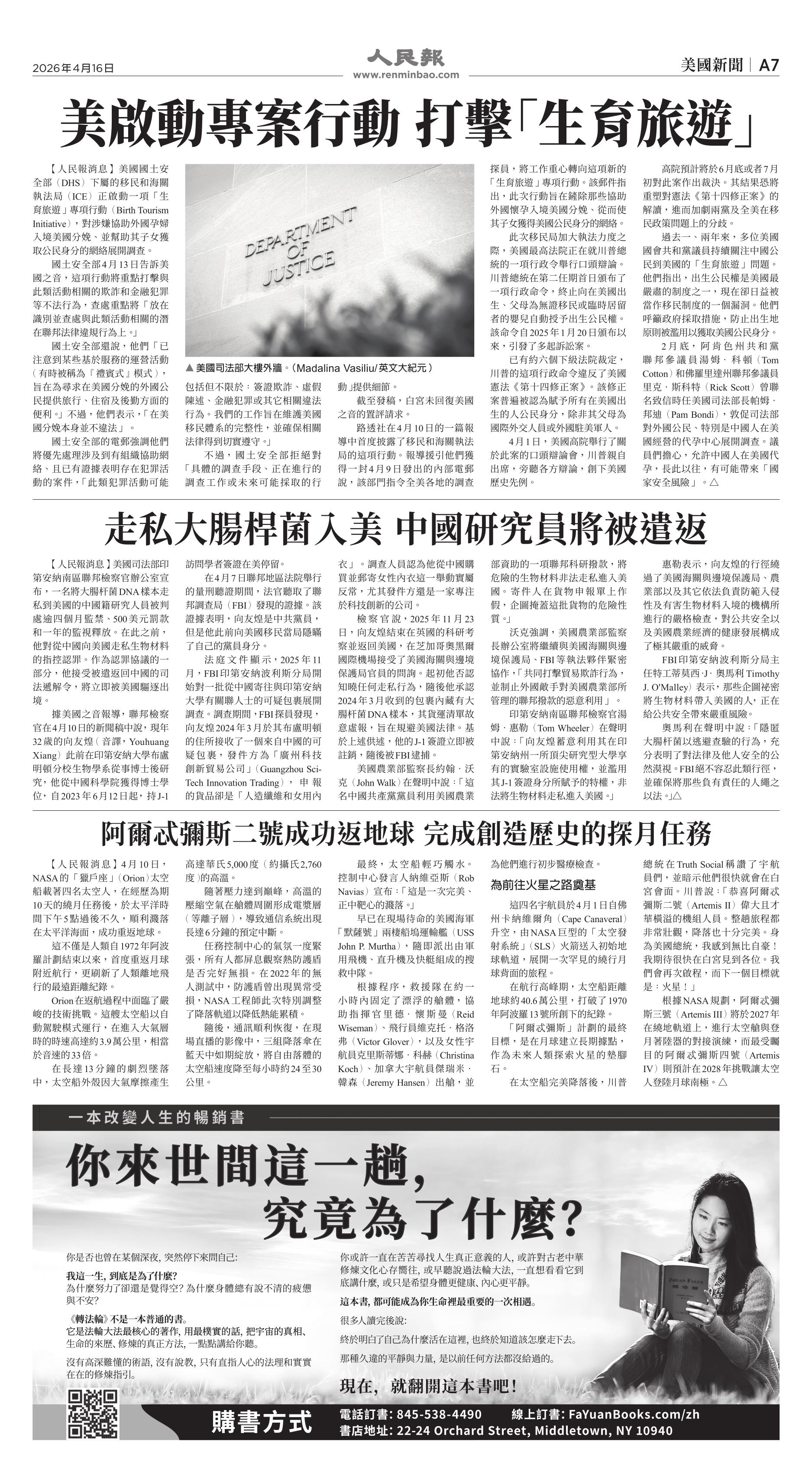 |<<  <<前一页 < 返回 第1060期  (2026年4月16日)A7版: 美国新闻 下一页>>  >>|