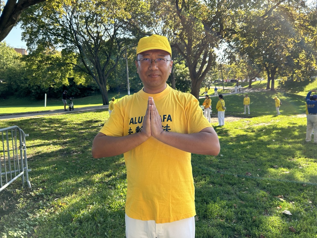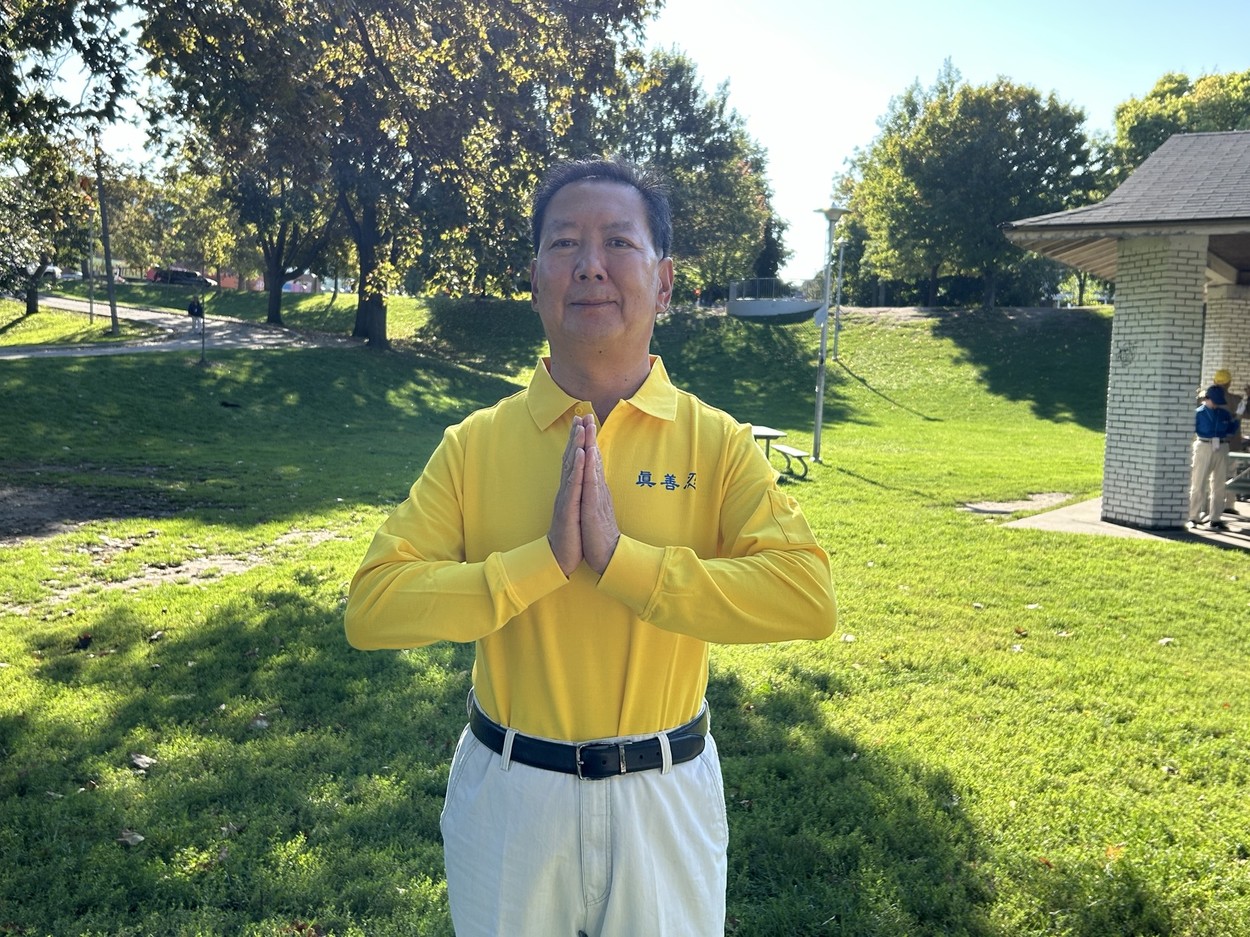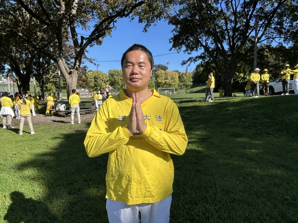 2025年9月28日,多倫多法輪功學員王楊恭祝李洪志師父中秋快樂。他說:「每當我遇到困難、沒有出路、沒有希望的時候,就感覺師父時刻在身邊,看護著我,保護著我。對師父的感恩,我無法用語言來形容。」(伊鈴/大紀元)