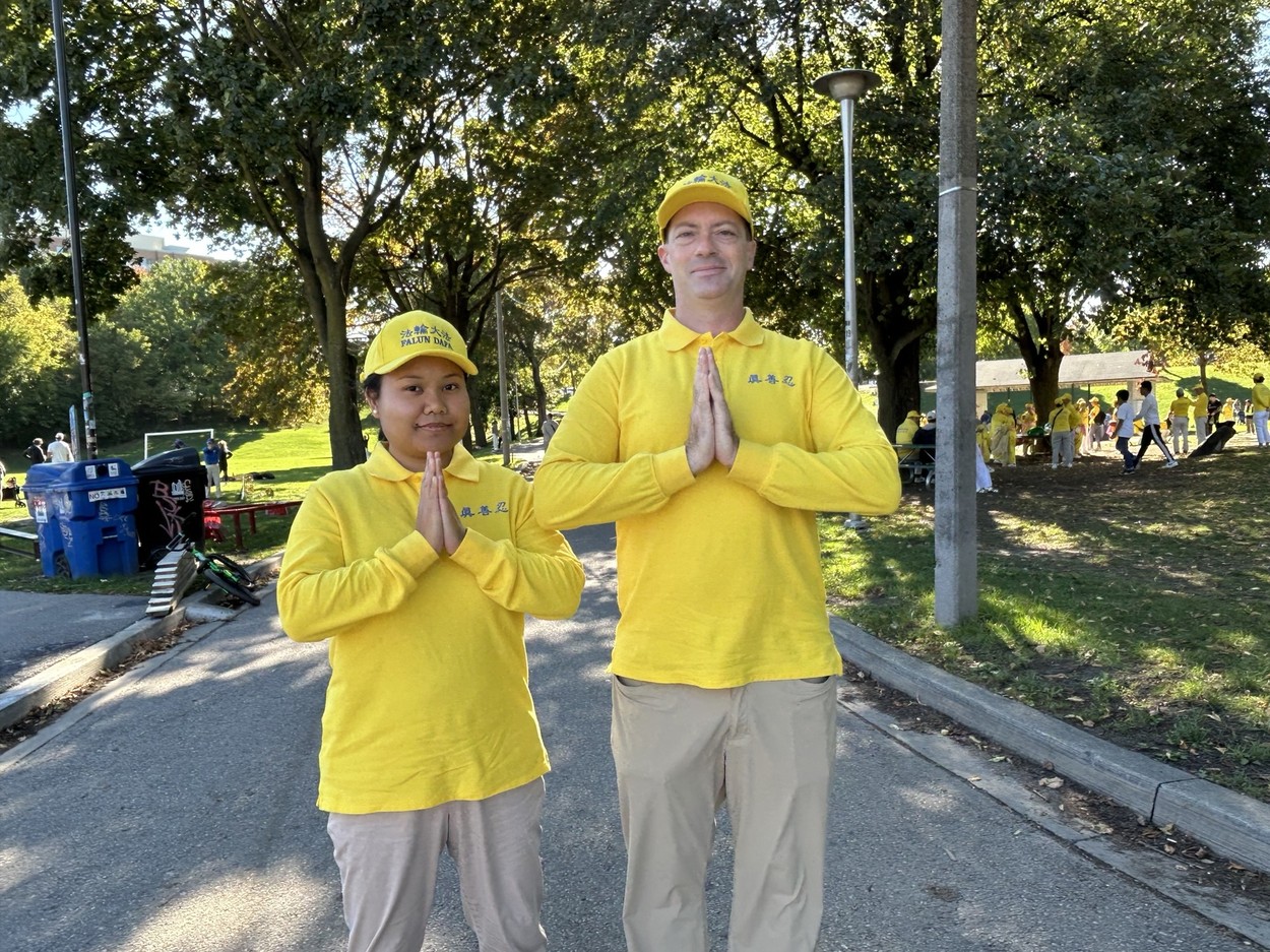 【人民報消息】中秋是團圓的時節,也是感恩的日子。在中秋節即將到來之際,9月28日,多倫多法輪功學員匯集在市中心,向法輪功創始人李洪志先生表達感恩。他們恭祝師尊中秋佳節快樂,感恩李洪志大師把法輪大法傳給世人,造福社會,造福人類。 當天,不同族裔、不同年齡的法輪功學員身著鮮亮的黃色煉功服,匯集在綠草如茵的克里斯蒂皮茨公園(Christie Pits Park),圍繞在「法輪大法好」的巨型橫幅下,通過視頻向尊師李洪志先生表達中秋祝福:「恭賀師尊中秋快樂,法輪大法好。」 80後青年感恩