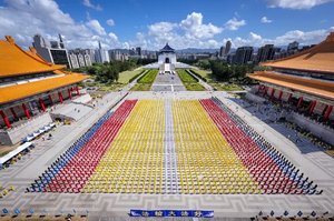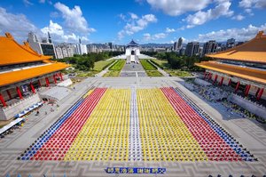 【人民報消息】10月18日,來自台灣、美加日韓、香港等地的部分法輪功學員逾5,000人,在台北中正紀念堂自由廣場,排出巨型的「法輪圖形及『法輪常轉』」圖像,場面殊勝、壯觀,向台灣社會傳遞法輪大法的美好。 據大紀元記者鍾元、戴德蔓台灣採訪報導,台灣法輪大法學會理事長蕭松山教授表示,自1999年7月20日起,中共開始迫害法輪功並延伸至海外。近期,國際媒體與人權組織相繼揭露中共在世界多國展開「跨國鎮壓」,包括對法輪功學員的騷擾、監控與威脅行動;或透過社群媒體平台,以假帳號散播不實訊息,進行認知戰;甚至以爆炸與槍擊等威脅,試圖干擾美國神韻藝術團的演出,引起國際社會的關注。