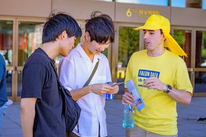 海外及台灣法輪功學員參加排字 感到很幸福 來自墨西哥的西人法輪功學員中文名叫「如明」,目前正在台灣旅行,已經三週。他說,「雖然今天天氣很熱,但是我很開心可以來台排字,坐的位置是排小卍字符,參加活動後感覺很好,更了解法輪大法是很好的修煉功法。」 「如明」形容自己以前是「小混混」,過去他抽菸、喝酒、參加派對,不知道人生的方向。他修煉法輪功後,身體變得健康、心情愉快,每天煉功看起來人很有精神。他的家人和朋友看到他的改變,他們覺得法輪功很好,讓他變成了一個「好人」。 薛女士1994年在黑龍江開始修煉法輪功,2014年自中國移居日本。她在日本重新開始修煉。此次在台灣參加排字活動,她感到非常開心,也感到作為大法弟子的榮耀。她表示,今天天氣特別好,看到大家都聚集在一起,感覺整個排字場面特別神聖。