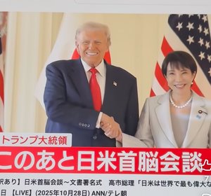 综合BBC、路透社、共同社报导,高市于当地时间10月28上午8时30分即抵达位在东京港区的迎宾馆,上午9时30分,她穿著米色套装、佩戴珍珠项链的高市在迎宾馆迎接川普,两人微笑握手,交谈几句后在两国国旗前合影,川普说:“这次握手很有力。”