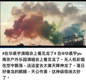 10月5日华晨宇南京演唱会,无人机彩烟弥漫飘荡在天空中,最后幻化为龙形。网友泪崩感叹:“是龙儿来看他的兄弟了”。(视频截图)
