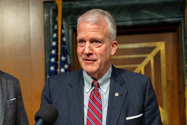 2025年11月20日,美國國會及行政當局中國委員會(CECC)主席、阿拉斯加州共和黨參議員丹·蘇利文(Dan Sullivan)在美國國會山莊聽證會上發言。(Madalina Kilroy/英文大紀元)