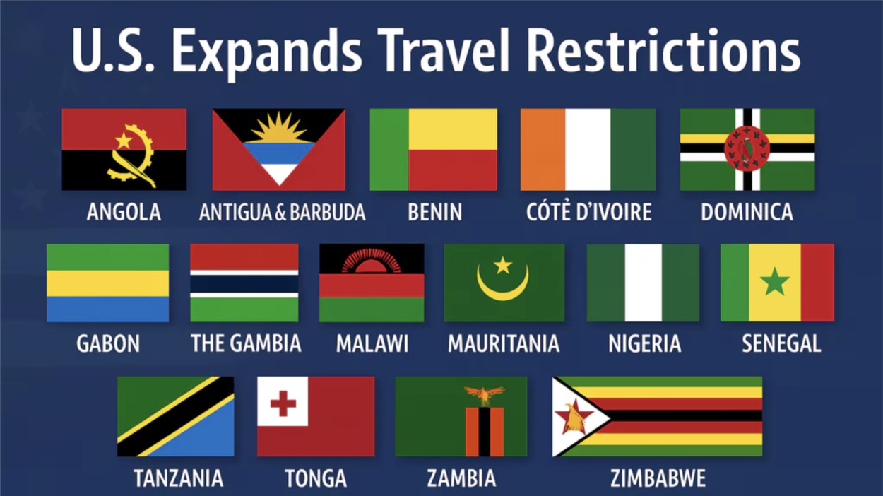 【人民报消息】唐纳德.川普(Donald Trump)总统宣布把全面或部分限制旅行名单上的国家从19个扩大到39个。新限制的生效日期是2026年1月1日。