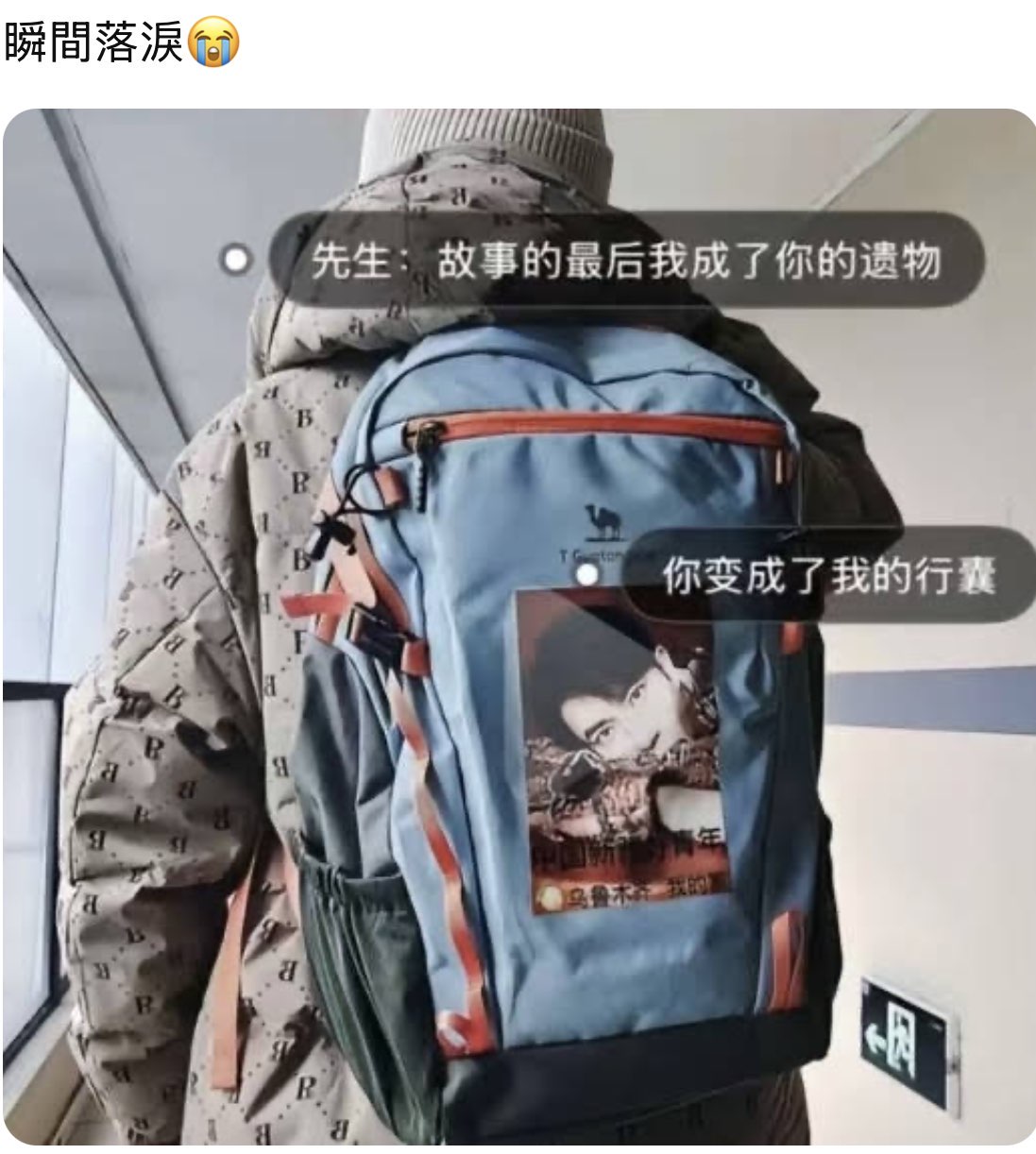 一個印有于朦朧照片的背包,讓網友瞬間落淚。(網絡圖片)