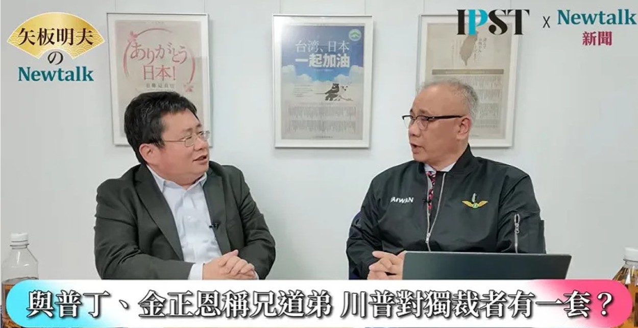 資深媒體人矢板明夫(左)表示,川普表面上與獨裁者稱兄道弟,實際上則是要求對方讓步。(視頻截圖)