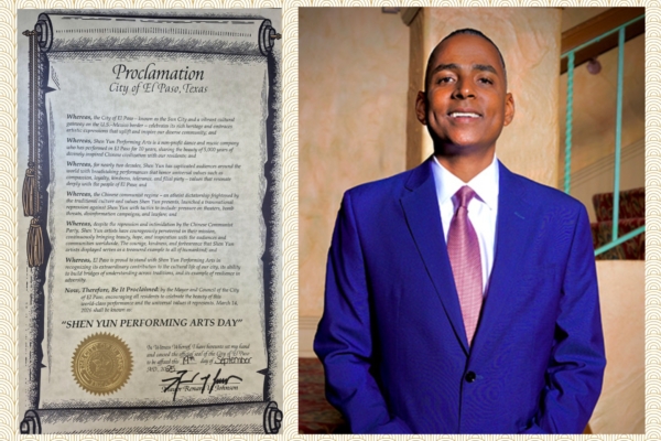 人口近70万的边境城市埃尔帕索市的市长雷纳德‧Y‧强森(Renard Y. Johnson)在9月19日的表彰令中表示,神韵十年来持续莅临埃尔帕索演出;该市素有“阳光之城”美誉,作为美墨边境充满活力的文化门户,至诚欢迎能够提升与激励多元社区的艺术展演。 “埃尔帕索市很荣幸与神韵艺术团体携手,表彰其对本市文化生活的非凡贡献、跨越传统架起理解之桥的能力,以及逆境中展现的韧性典范。”强森与市议会宣告,“鼓励全体市民共庆这台世界顶级演出所展现的艺术之美,及其承载的普世价值”;并将2026年3月14日定为“神韵日”(Shen Yun Performing Arts Day)。