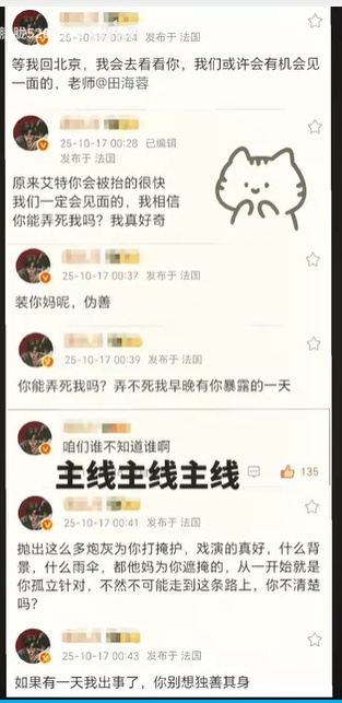 凛北川10月17号的微博上显示,当时去了法国的凛北川,在微博上艾特了田海蓉,并说等他回到北京,会去见田海蓉。
