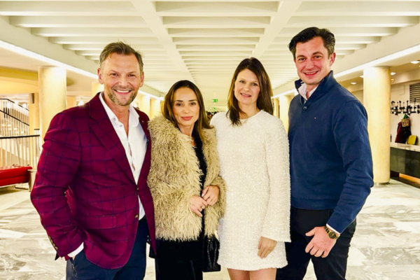 2026年1月12日晚,神韻巡迴藝術團在波蘭羅茲的羅茲大劇院(GRAND THEATER IN ŁÓDŹ)上演了今年當地第五場演出。房地產公司老闆Mariusz Maciejewski(左一)和太太(左二)以及顧問公司老闆Piotr Osowiec和太太一起觀看了演出。(王亦笑/大紀元)