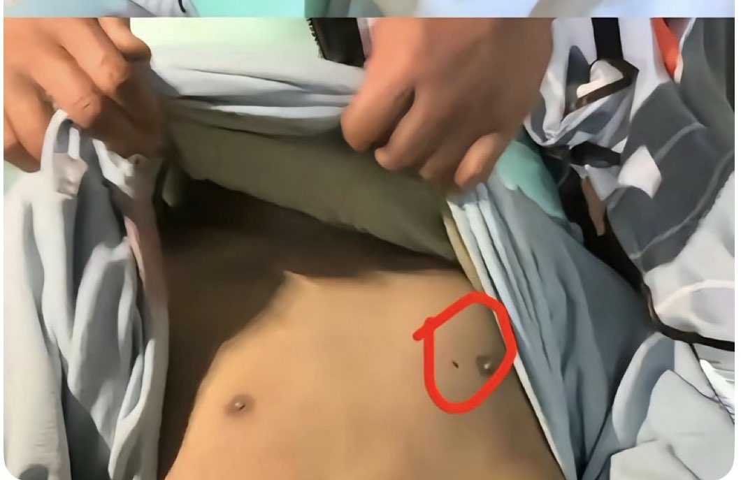 孩子左側胸口還有個釘子般大小的孔洞。(網絡截圖)