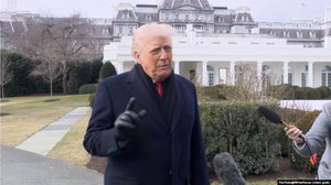 川普總統星期五(1月16日)在離開白宮時回答記者提問。