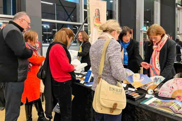 美国神韵巡回艺术团于2026年1月22日在奥地利首都维也纳市政厅剧院F大厅(Wiener Stadthalle, Halle F),上演了今年在当地的首场演出。观众对法轮大法书籍很感兴趣。(安然/大纪元)