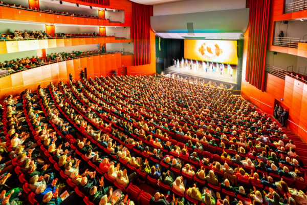 2025年1月6日,神韻新紀元藝術團在普羅旺斯大劇院(Grand Theatre de Provence)進行了2場演出。圖爲當天下午場演出結束,神韻藝術家向全場反應熱烈的觀衆謝幕。(傅潔/大紀元)