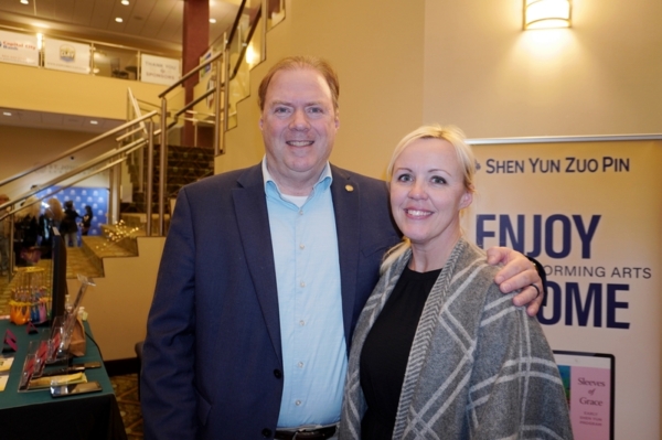 2026年2月11日晚,企業高管Chuck Bolen與太太Amy Bolen一起欣賞了神韻世界藝術團在美國傑克遜維爾/橙園約翰河州立學院長尾鯊號角中心(Thrasher-Horne Center at St. Johns River State College)的第二場演出。(林南宇/大紀元)