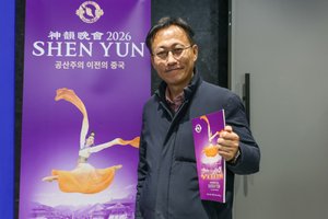 2026年2月19日晚,權五燦觀賞了神韻新紀元藝術團在大邱壽成藝術中心的第一場演出。(金國煥/大紀元)