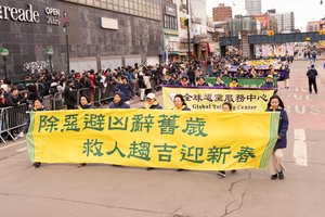 2026年2月21日丙午马年大年初五,法轮功学员参加纽约法拉盛中国新年游行,带去美好和祝福。(张静怡/大纪元)