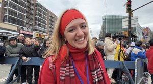 法轮功的队伍中一首喜庆、欢快的《辞旧迎新祝愿歌》不断在街头回荡,给民众送福:“愿你得平安,愿你结善缘,愿你时刻存善念,越走路越宽。法轮大法好,字字金光闪,愿你记住真善忍,来年再相见!” 中西族裔民众人山人海 盛赞法轮功 法拉盛中心区的人流量每天超过10万人次,是仅次于纽约时代广场的纽约市最繁华的社区,观看游行的中西族裔民众人山人海,扶老㩦幼,在Main街上挤得里三层外三层。他们的脸上洋溢著笑容,纷纷对法轮功学员的队伍赞不绝口。 “每年最期待法轮功队伍!”