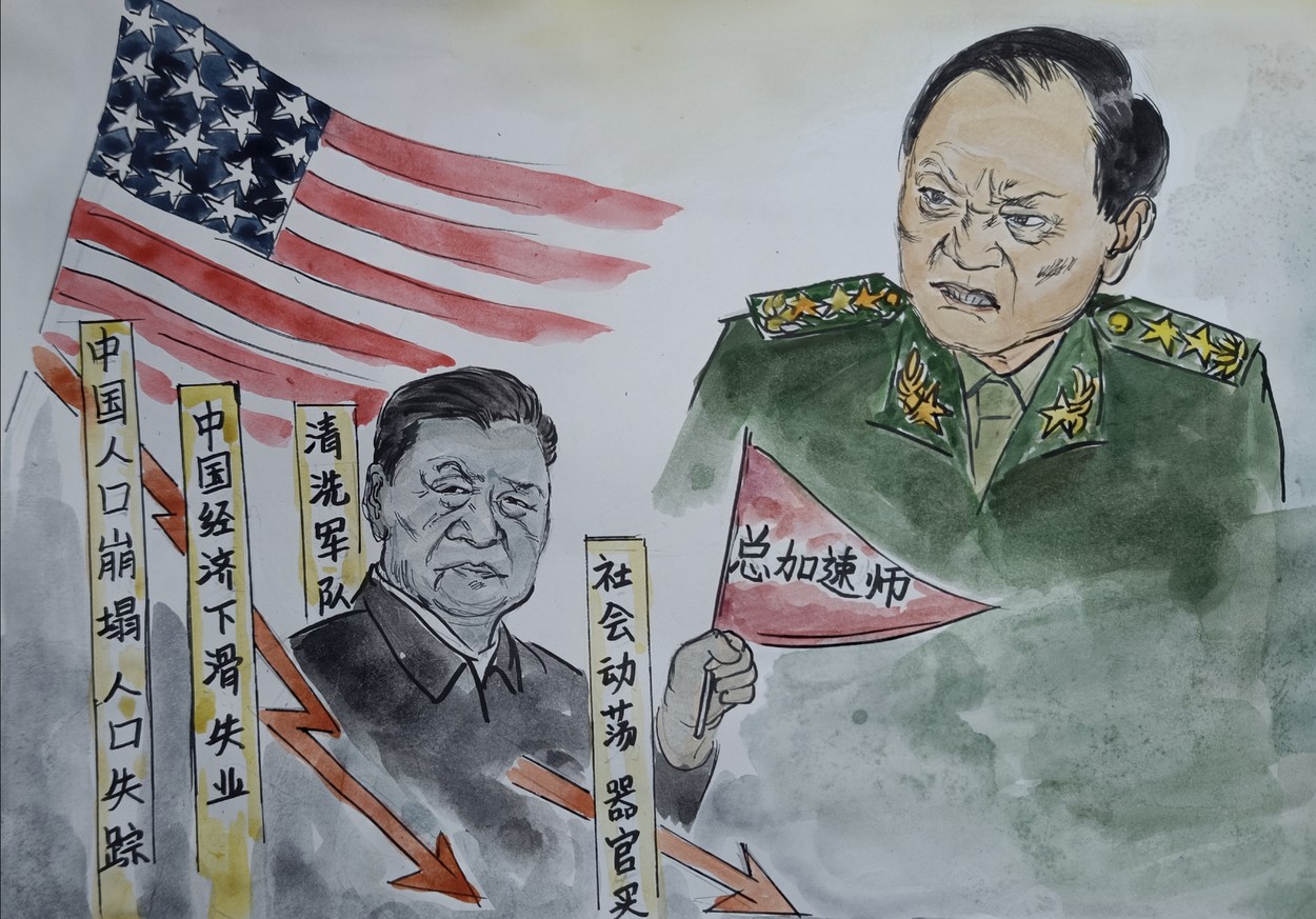 「張又俠被抓」證實中共已經窮途末路。X帳號「精衛」:「當整個中央軍委都被當間諜拿下,有沒有可能習近平才是美國間諜?」總加速師說:我就是要昏招連連步步錯,越是加速越亡國。(清玉/人民報製圖)