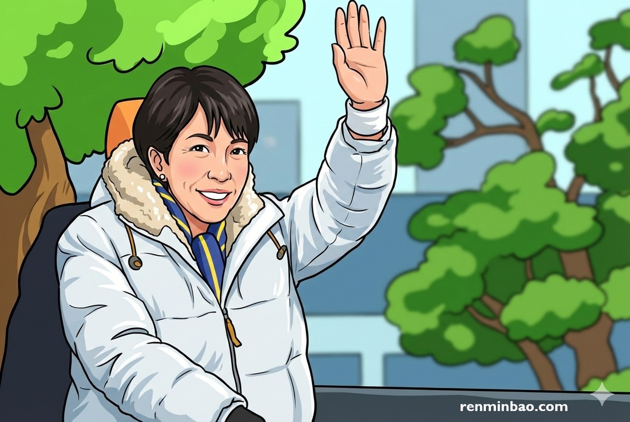 高市早苗率自民党获得大胜,赢得国会三分之二的席次。(人民报/AI制图)