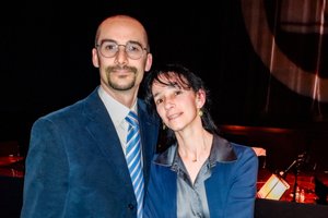 2026年3月17日晚,音乐家Enrico Minaglia与律师Orsola Milani在意大利罗马协和音乐厅(Auditorium della Conciliazione),观看神韵纽约艺术团在当地的第六场演出。(Francesca Rotondi/大纪元)