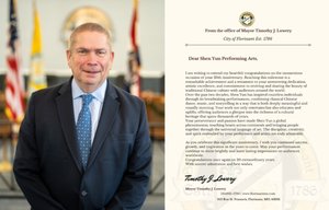 密蘇里州弗洛里森特市長Timothy J. Lowery也向神韻藝術團20週年這一重要時刻致以誠摯祝賀,他寫道:「能夠達成此一里程碑,是一項非凡的成就,也充分展現了貴藝術團堅定不移的奉獻精神、卓越的藝術造詣,以及致力於復興並向全球觀眾傳播中國傳統文化之美的承諾。」 「過去二十年來,神韻通過令人讚歎的演出,呈現出既深具意義又有視覺震撼的藝術體驗,將中國古典舞蹈、音樂與故事敘述完美融合,激勵了無數觀眾。你們的創作不僅帶來娛樂,更兼具教育與啟迪的作用,讓觀眾得以一窺這橫跨數千年的文化遺產。」 「你們的堅持與熱忱,讓神韻成為風靡全球的現象,跨越(美國)大陸、觸動人心,並通過藝術這門普世語言將人們凝聚在一起。演員與藝術家所展現的紀律、創意與精神,實在令人欽佩。」 市長Timothy J. Lowery表示,「值此重要週年之際,謹祝貴藝術團在未來持續取得成功、蓬勃發展,並並不斷啟迪人心。願你們的演出持續閃耀光芒,為全球觀眾留下難忘的回憶。再次祝賀貴團二十載非凡成就。謹致由衷的敬意與美好祝福。」