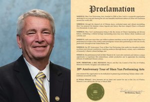 密蘇里州弗洛里森特市長Timothy J. Lowery祝賀神韻藝術團20年來獲得的非凡成就。(主辦方提供)