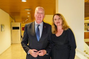 2026年3月28日晚,美国神韵环球艺术团在西班牙穆尔西亚市维克多·维列加斯礼堂(Auditorio Víctor Villegas)上演了当地首场演出。大区议员、医学专家Antonio Martínez Pastor与太太一起观看了演出。(王亦笑/大纪元)