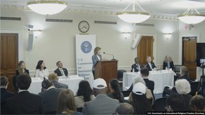 美國國際宗教自由委員會(USCIRF)在國會山發布2026年度報告,委員會主席維姬.哈茨勒(Vicky Hartzler,中間站立者)致辭。(2026年3月4日)