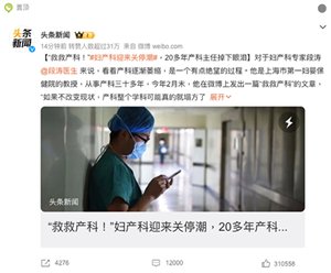 中國出生人口逐年下降,導致許多醫院的婦產科相當冷清而面臨關閉。(網絡截圖)