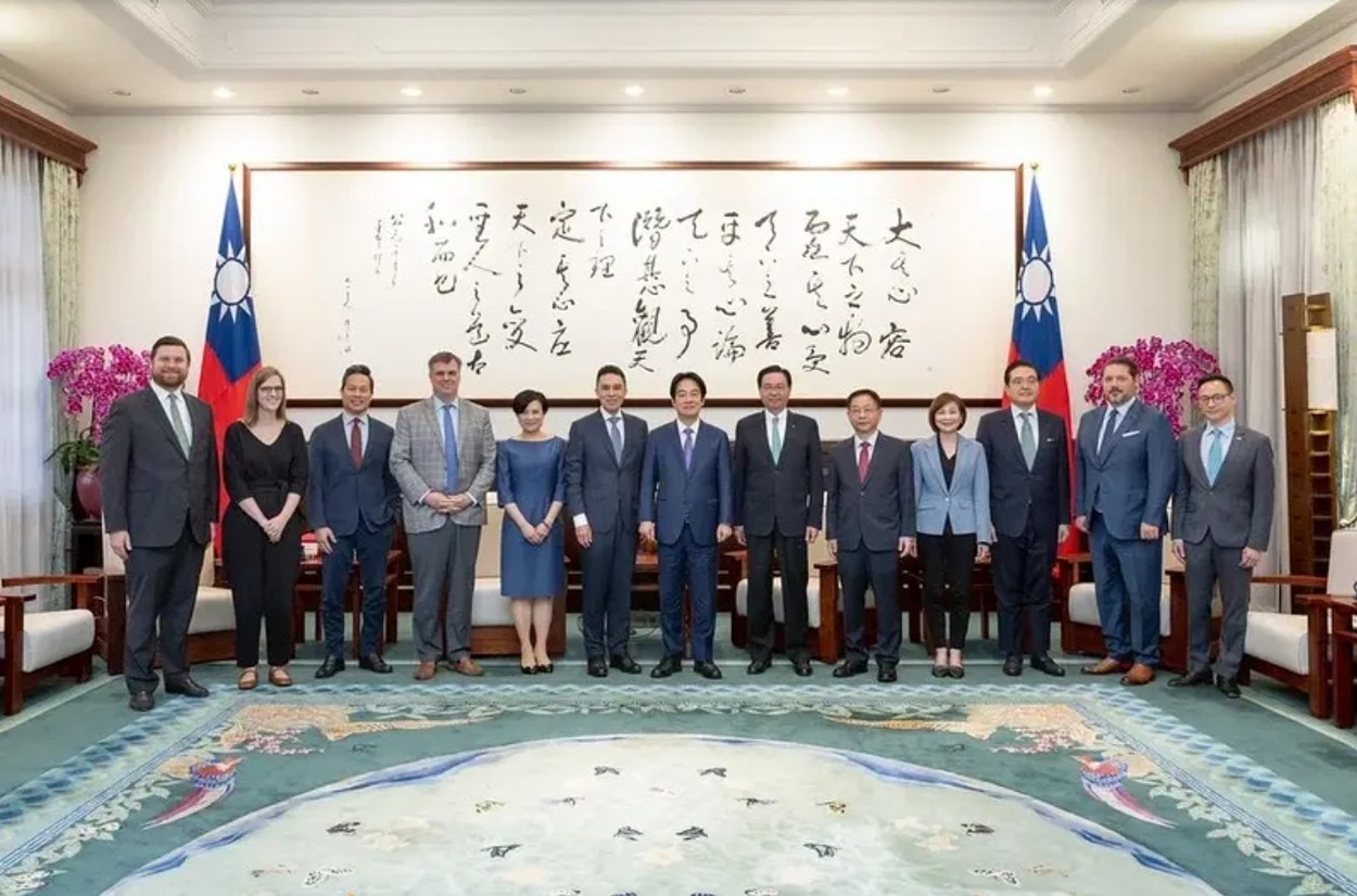 2026年3月31日,中华民国总统赖清德接见“全球台湾研究中心”(GTI)媒体访问团与访宾一行人合影。(中华民国总统府)