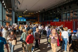 2026年4月7日下午,神韵世界艺术团在里昂国际城圆形剧场(L’Amphithéâtre 3000)进行了第二场演出,观众在场外排长队等候入场。(傅洁/大纪元)
